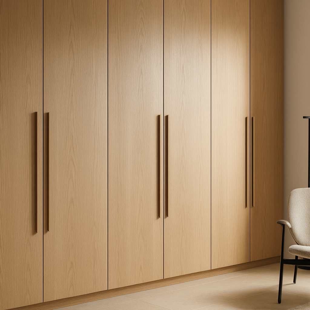 De greep is geschikt voor zowel deuren als lades en verkrijgbaar in twee lengtes: 300 mm (voor kleinere fronten) en 1200 mm (voor hoge deuren). Gemaakt van bestaande decoren, past de greep bij alle beschikbare 18 mm kleuren uit ons assortiment.